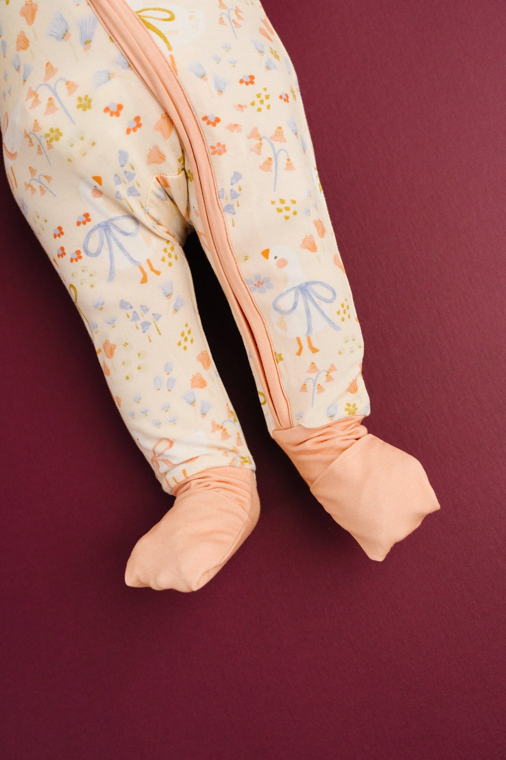 Our Darling Goose Bamboo Sleeper features the most charming little goose print, perfect for soft spring days and cozy cuddles. Made from buttery soft, breathable bamboo, it’s stretchy, lightweight, and gentle on baby’s skin.